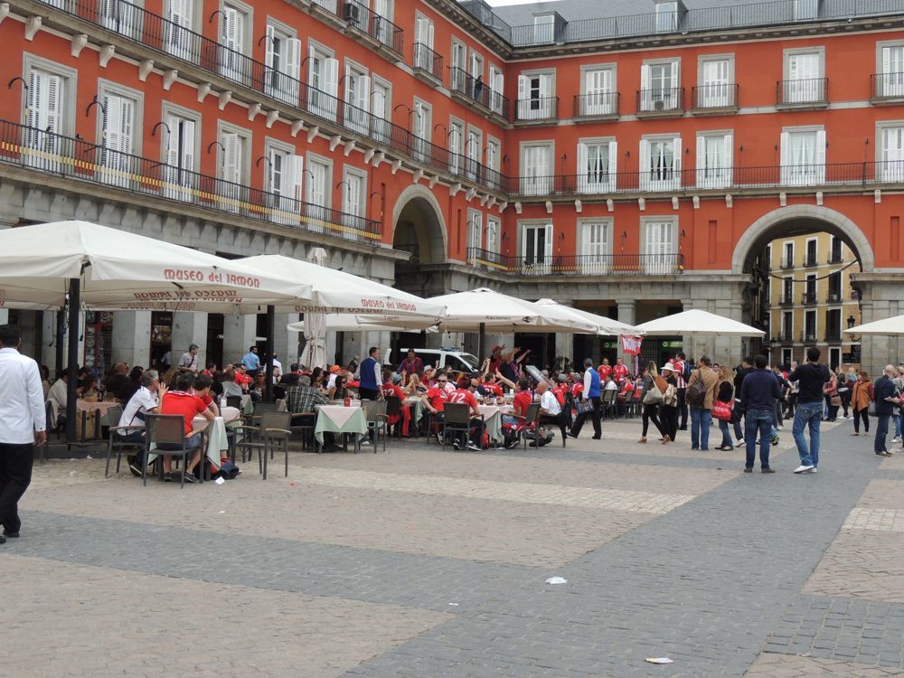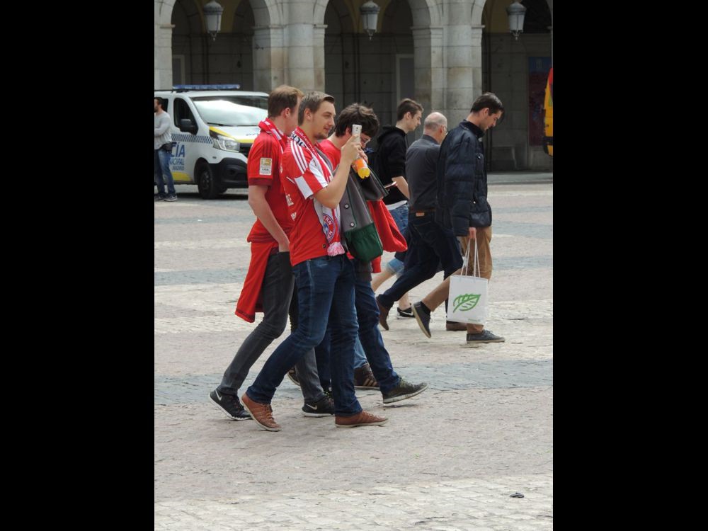 1) The strange noises coming from the square turned out to be German football fans in town to cheer their team in their match against Athletica Madrid.