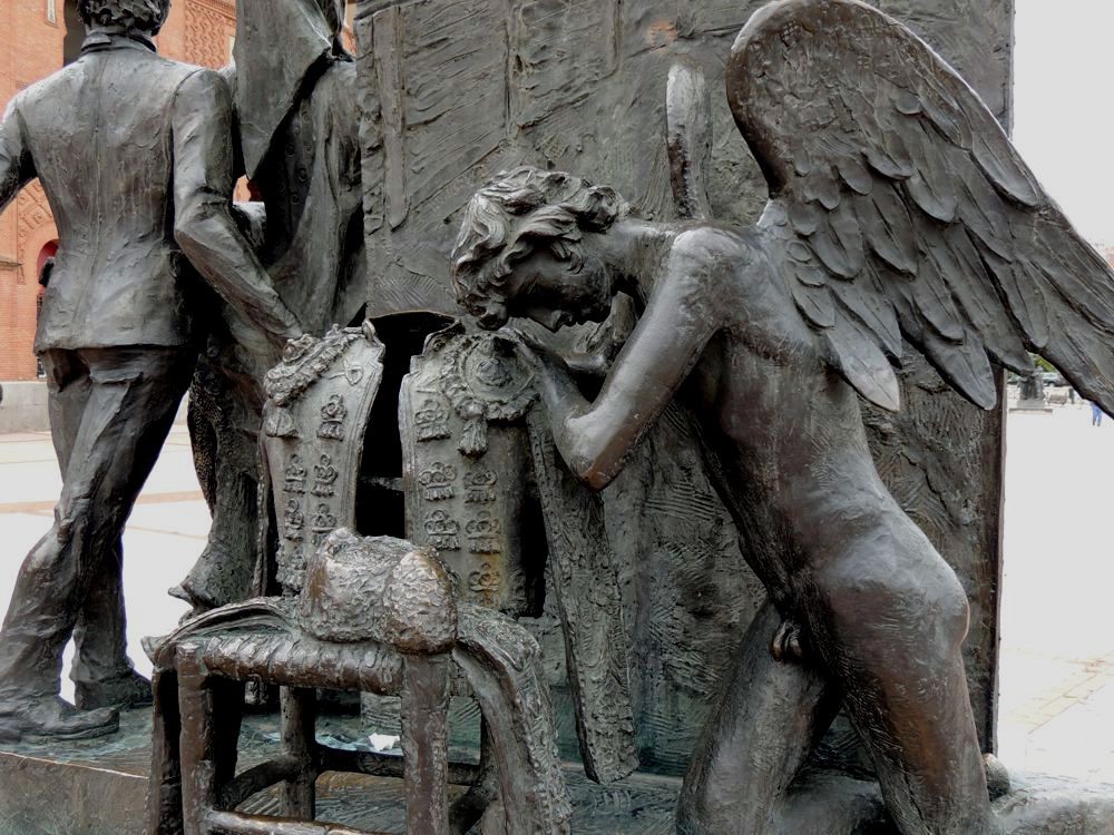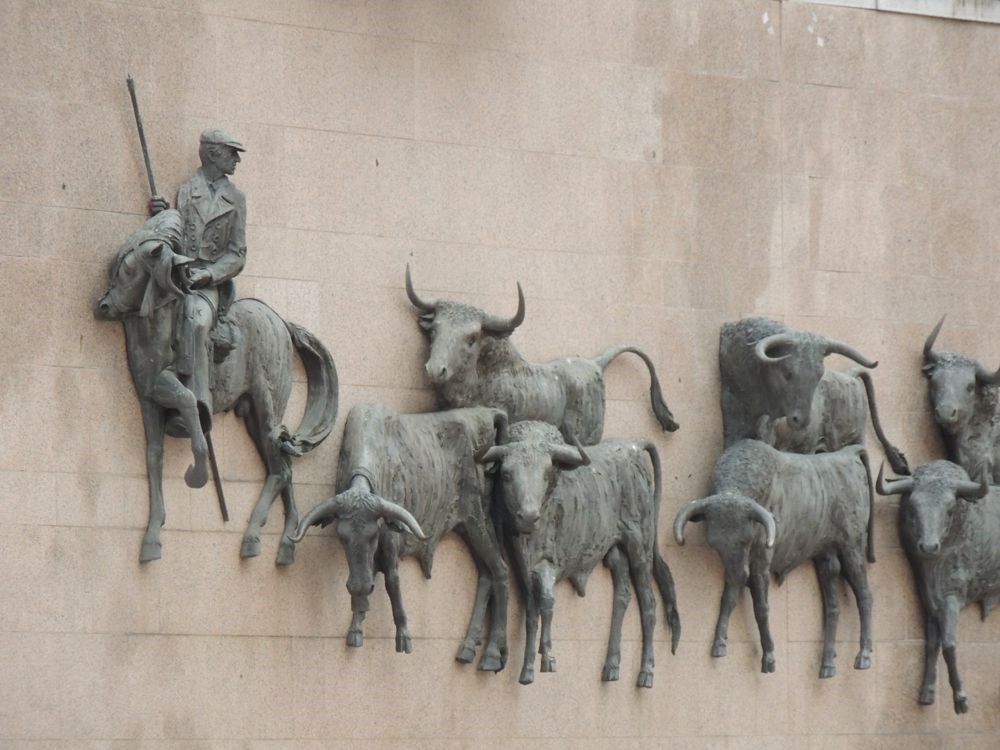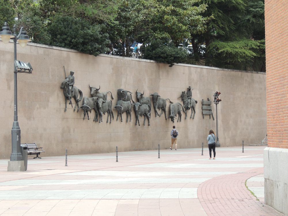 The walk from the back of the Plaza de Toros to the front is long... it's a huge building! When I got back to the front, some people were using one of the matador statues to advertise their fitness shop. A woman was telling them (it was obvious by how agitated she was) that it just wasn't right. Her good sense prevailed and the people took their phony weight (and themselves) away from the plaza.