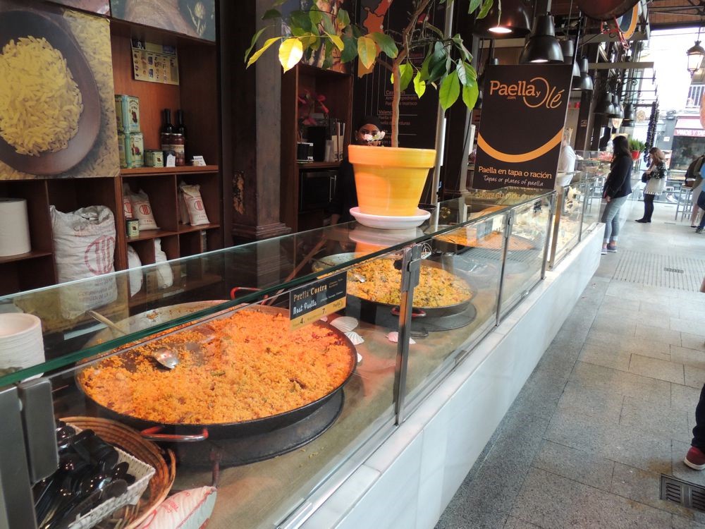 I had chosen to go back to San Miguel Market to sample the tapas there. My choices? Several stuffed olives, crab on seaweed with