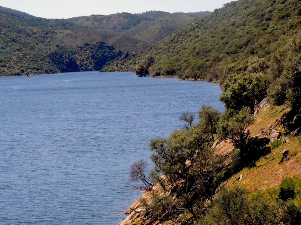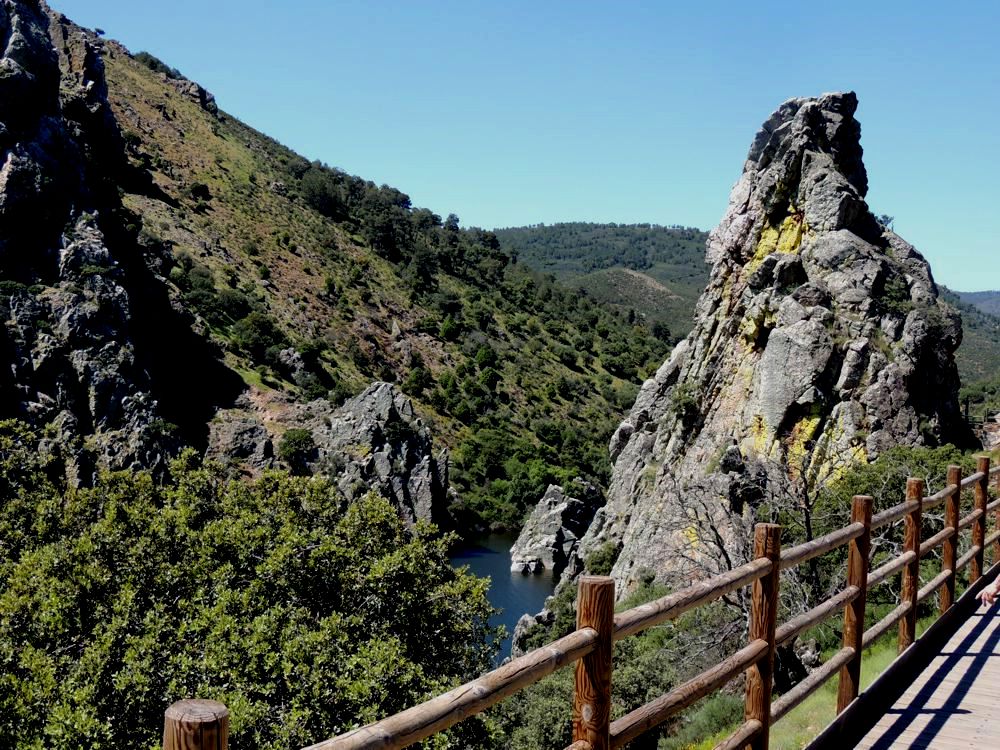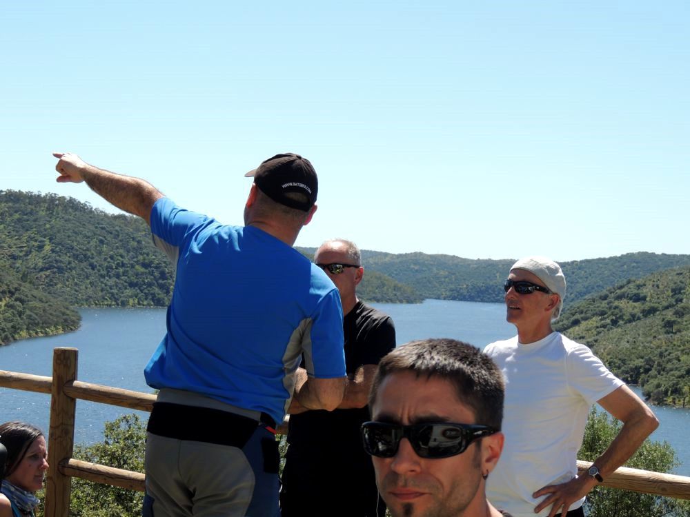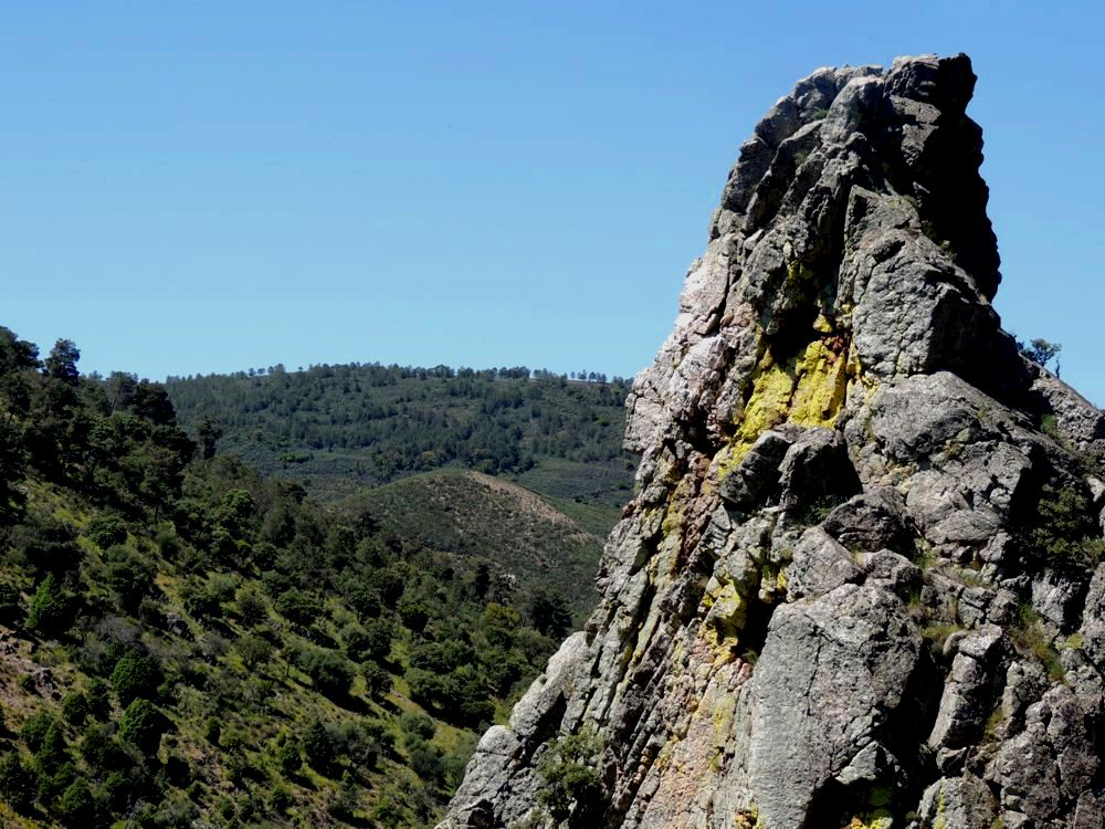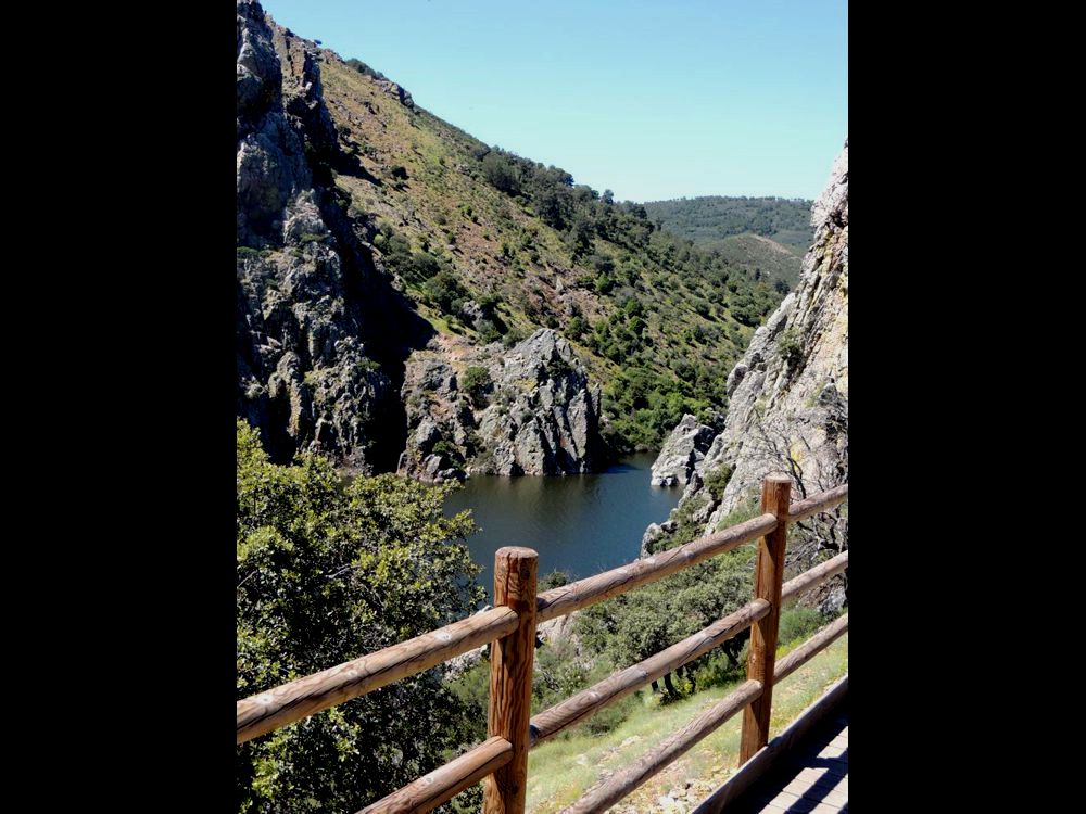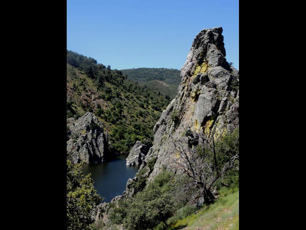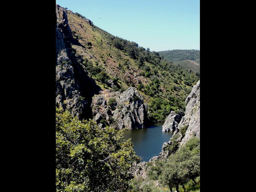 We stopped at Salto del Gitano (a rockface) on the side of the road (EX208) in Parque Natural de Monfrague to see the BIG birds. According to a website I found, birdwatchers come to this area to see many types of birds but predominantly the vultures and eagles. Martin told us of how on one occasion, he went around a corner of the road only to come across several of the HUGE vultures feasting on a dead animal on the road. He told us how the birds were as big as shoulder height? It sounded like the encounter kind of creeped him out. Understandable. It was interesting to see the multitude of birds flying above us... some in formations! Those appeared to be eagles because their necks were of not overly long the way a vulture's would be. There was a large vulture at the top of a set of rocks across the road from where we parked. I snapped several pictures of him as he groomed his feathers.