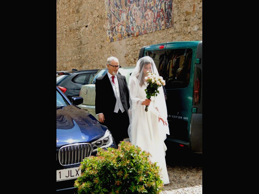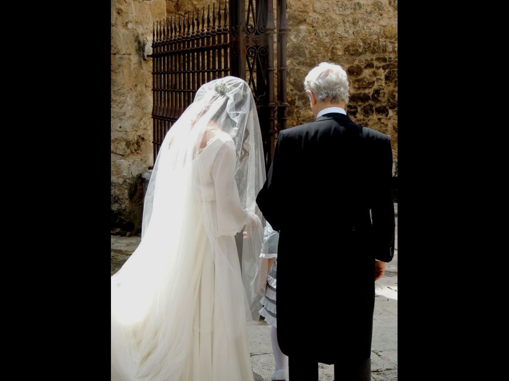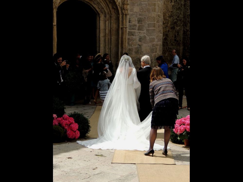 I continued down Calle Mayor and as I walked, I noticed many "dressed up" ladies and gentlemen. When I got to the Plaza de Ayuntamiento, home of the Ayuntamiento (City Hall), there was a church across the street. There, a group of people were waiting for... a bride to arrive! I'm thinking the cute little girls wearing the dresses with ruffles were flower girls, etc and the ladies wearing the royal blue dresses were the bridesmaids.